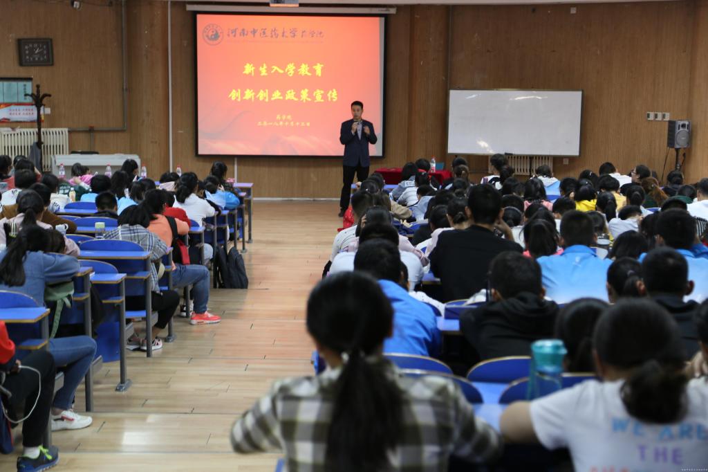 2018年10月12日下午13点,*七猫小说 在一楼多功能厅举办了新生入学教育系列讲座之创业创新政策宣传。本次讲座诚邀河南省第二届创新创业十佳标兵、2001级中药学专业优秀校友石磊为主讲嘉宾,*七猫小说 党委副书记刘雅琳、2018级新生辅导员胡春月2018级新生聆听了本次讲座。