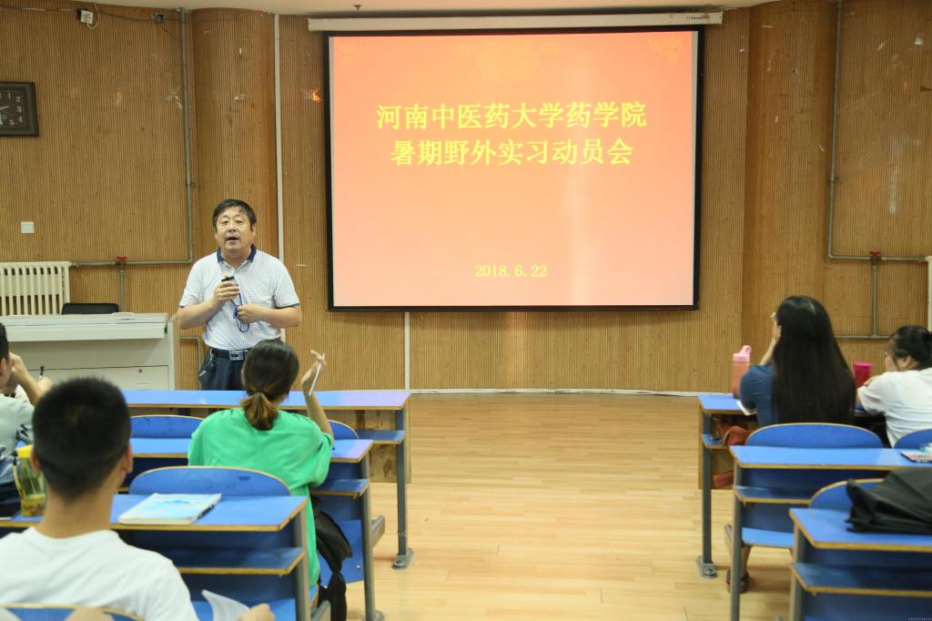 为强化学生安全意识,确保野外实习顺利开展,2018年6月22日,*七猫小说 暑期野外实习动员会在教学楼一楼多功能厅召开。*七猫小说 副院长董诚明、生药学科主任谢小龙、辅导员武永勇、王超、蒋亚楠及2015级中药资源与开发本科班、2016级中药本科班、2016级中药资源与开发本科班全体学生参加了本次动员会。