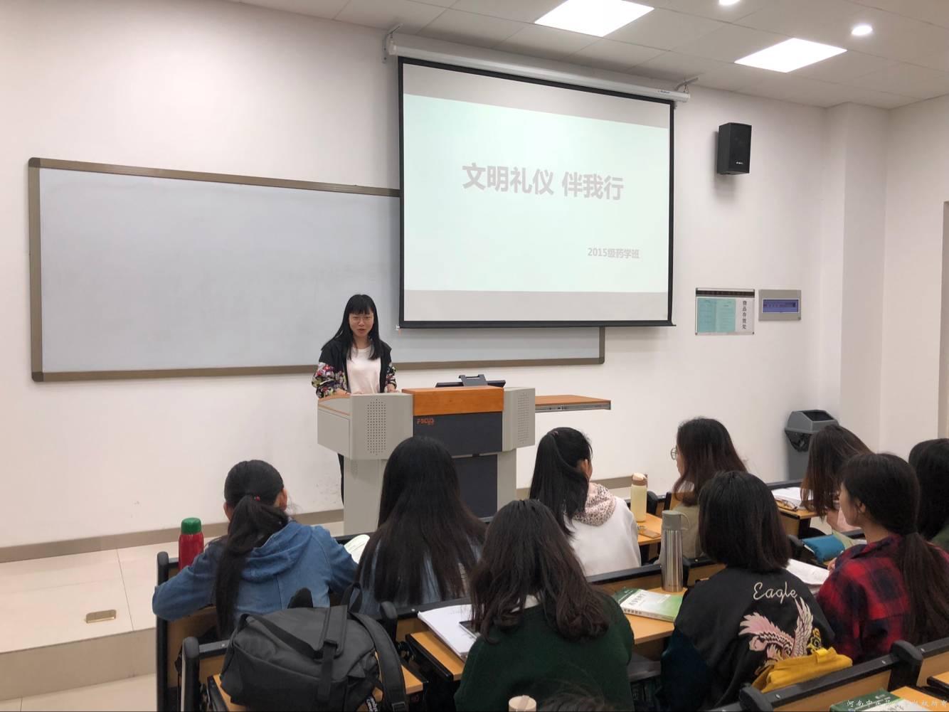 在主题班会中,各班班委或以先贤名言激励大家,或以图片视频的形式深入介绍文明礼仪,或以文明礼仪小故事使大家有所感悟,丰富多彩的讲解形式使同学们深刻地认识到文明礼仪的重要性,也感受到讲究礼仪不仅是个人生活小节或小事,而是一个国家社会风气的现实反映,是一个民族精神文明和进步的重要标志。随后,同学们踊跃发言,交流心得体会,大家均表示礼仪修养不仅是为人处事的基本礼貌,同时礼仪也可以建立自尊、增强自重、自信、自爱,处理好各种关系。