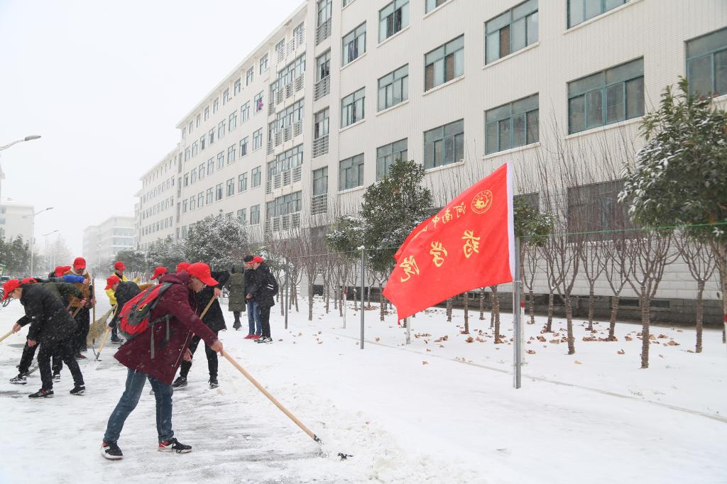 严寒风雪挡不住同学们的热情,大家手拿铁楸、扫帚等工具开始扫雪、铲冰工作。在劳动中,大家忘记了寒冷,顶着寒风埋头苦干。虽然室外温度依然很低,但是劳动的热情,团结的力量让冬日里的天气变得格外温暖,整个过程充满了欢声笑语,大家发扬吃苦耐劳、团结协作的精神,顶着寒风,将积雪清扫干净,践行志愿精神,也成为了校园里一道靓丽的风景线。