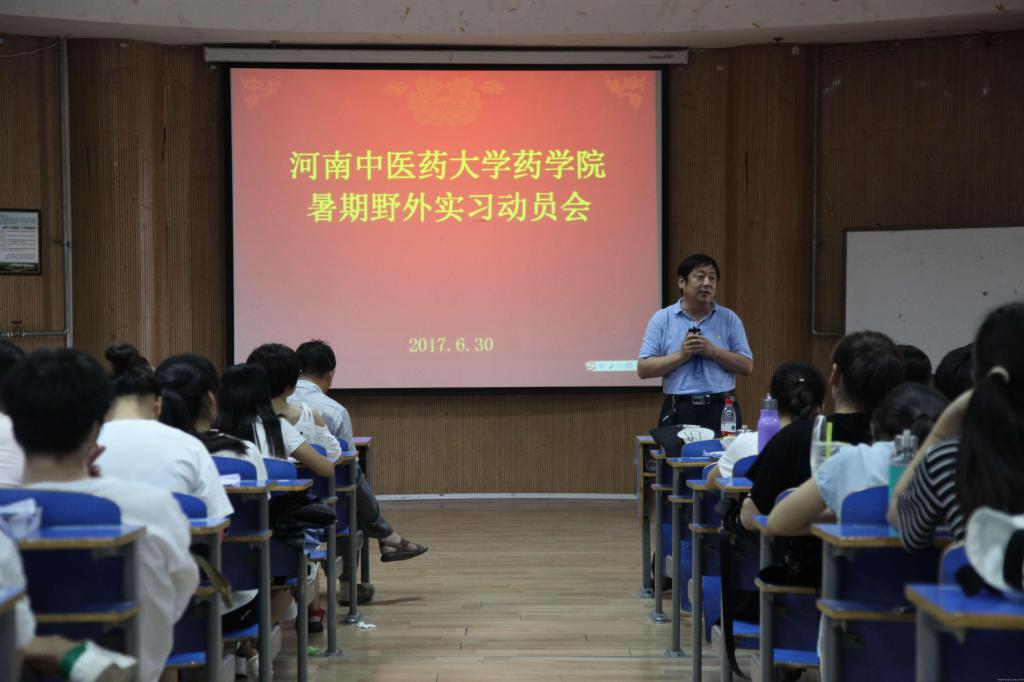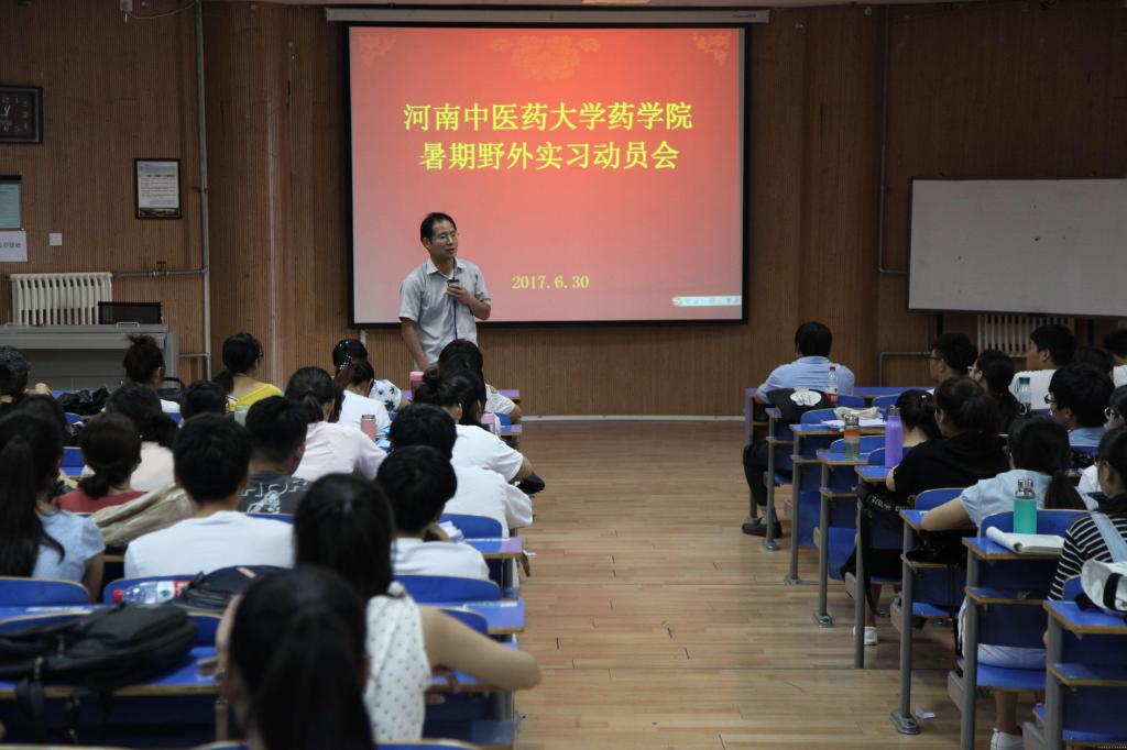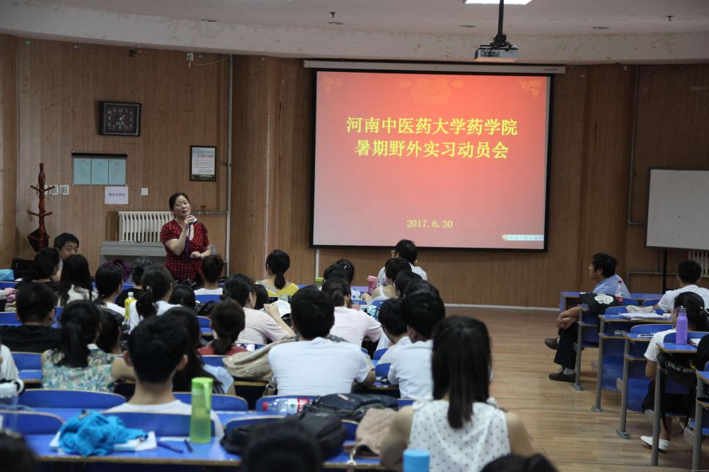 为顺利开展*七猫小说 暑期野外实习活动,强化学生安全意识,确保野外实习顺利进行。6月30日中午,*七猫小说 暑期野外实习动员会在教学楼四楼多功能厅召开。*七猫小说 党委副书记杨文胜、*七猫小说 副院长董诚明、生药学科主任谢小龙、*七猫小说 学工办主任高巍、2014级辅导员胡春月、2015级辅导员武永勇、2014级中药资源与开发班、2015级中药传承班、2015级中药本科班、2015级中药资源与开发班全体学生参加了本次动员会。
