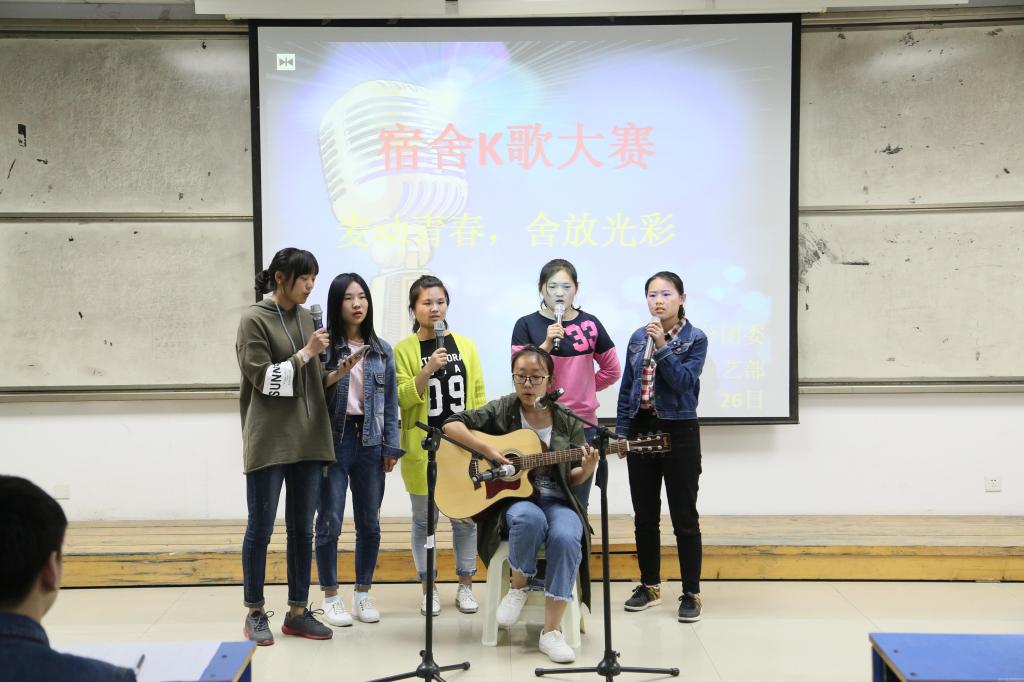 音符飘扬,青春激荡。为丰富校园文化生活,打造温暖和谐的宿舍氛围,*七猫小说 于2017年4月26日晚7点在教学楼二楼阶梯教室举办宿舍文化节系列活动之“麦动青春,舍放光彩”宿舍K歌大赛。共计24组选手参加了本次比赛。