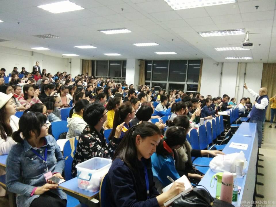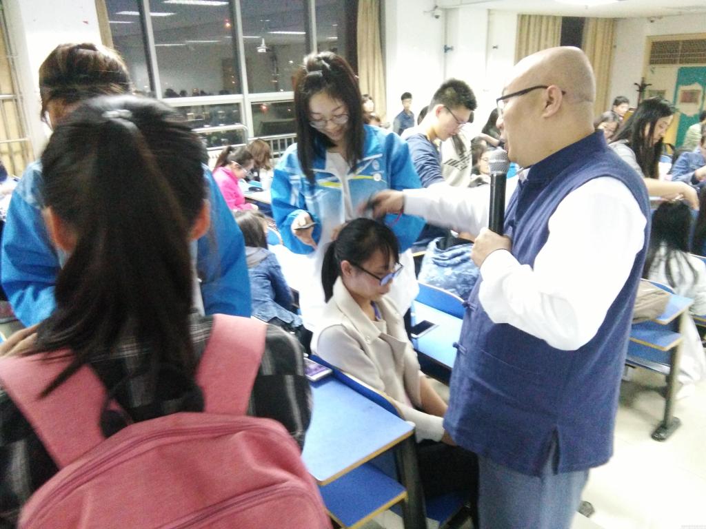 活动伊始,邓永清老师用两首改编的《刮痧歌》吸引了广大同学们的兴趣,他又巧妙地以三焦之要设置悬念,提出简单易学的经络法,为在场的刮痧爱好者们讲解刮痧知识和注意事项。随后,邓老师亲自示范刮痧手法并对刮痧技巧及一些治疗常见疼痛的刮痧方法进行了讲解,并对现场学员实操情况进行了详细指导,他还就各个学员的不同痧像从中医学的角度进行了透彻分析,在中医药基础理论下为同学们讲解了各类体质的差异与养生保健的方法。最后,现场互动提问阶段,邓老师根据同学们提出的疑惑给予了详细解答。