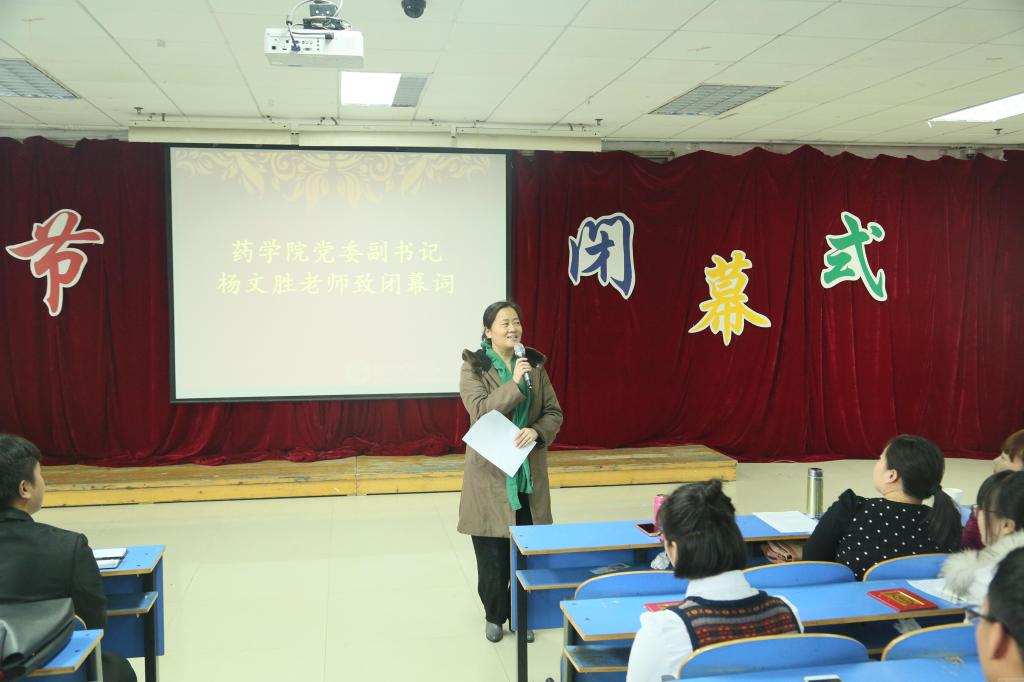 在*七猫小说 分团委的组织安排下,本届药苑节从10月24日开幕至今,先后举办了药苑节开幕式暨中药标本展、中药谜语竞猜、中药饮片竞猜、最美河中医时光摄影展、书法大赛、中药知识竞赛、古诗文朗诵大赛、秋季辩论赛、我的中药那些事征文大赛、2016年秋季运动会等十余项活动,同学们积极参加,反响良好,最终评选出了10位表现突出的先进个人,由嘉宾老师为获奖同学颁奖并合影留念。最后,*七猫小说 党委副书记杨文胜老师为本届药苑节致闭幕词,对全体师生的努力与支持表示感谢,鼓励同学们要大胆创新,牢记药苑学子所肩负的责任与使命,传承中医药文化,为全人类的健康做出贡献。