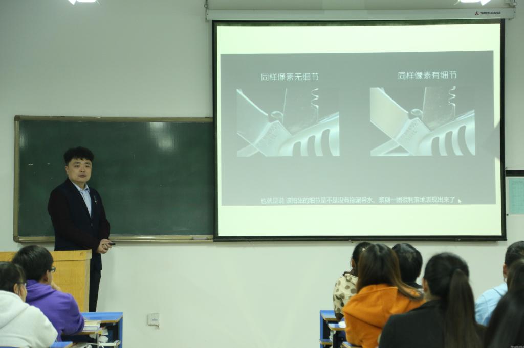 讲座中,孙宁老师从如何拍好一张照片入手,对构图、艺术创作等方面作了详细讲解。随后,向大家普及相机光圈、相机类型等相关知识,传授给大家在不同天气情况下的拍摄技巧。在此期间孙宁老师对同学们的提问都给予了详细且专业的解答,现场气氛热烈而活跃。孙老师还特别强调,摄影的本质就是“用光在图片上作画”,这让同学们进一步明白,学习摄影不仅要有良好的技术,平时还要多多观察,善于发现美,讲座在同学们的阵阵掌声中圆满结束。