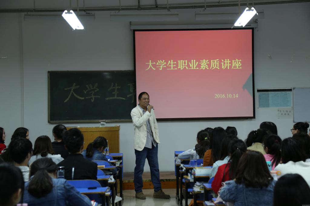 王玳总监给同学们讲解了应聘时大学生应该注意的问题,包括提前搜索公司信息了解公司基本情况、注重自己的仪表举止、提前做好充足的准备以及一些有关面试时需要注意的问题。刘道华总经理从创业方面讲解了大学生创业容易失败的原因,全面分析了创业所需要的条件。