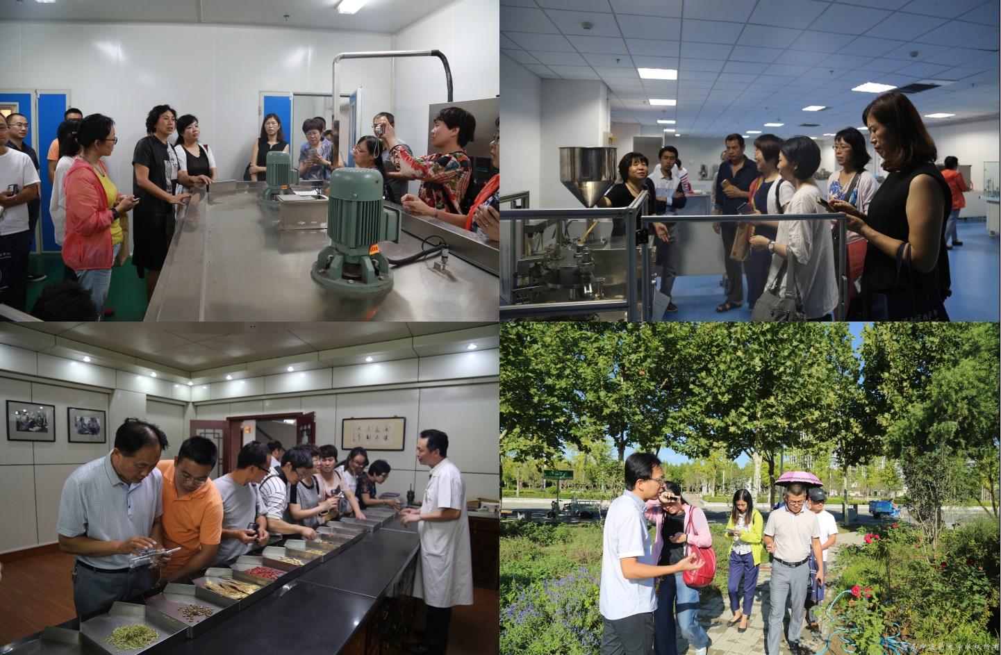 学员在实验室、GMP模拟车间、中药植物园和二附院精品药房等地参观学习