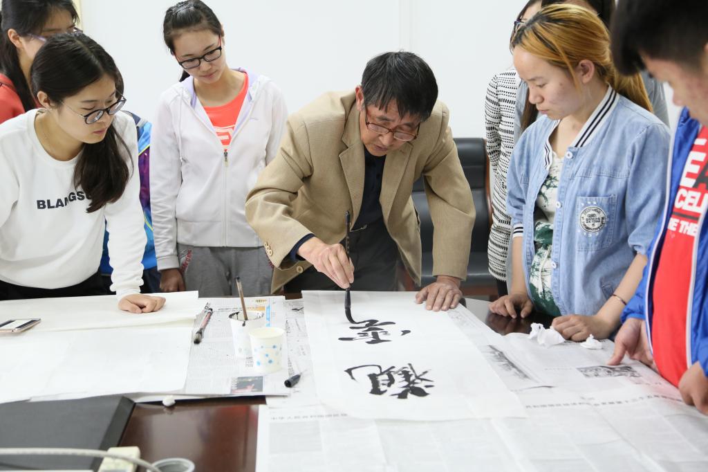 为了弘扬中华文化,提高同学们对中国书法的爱好,*七猫小说 邀请七猫小说 书画院专家于4月23日在*七猫小说 会议室A236举办了书法交流会。本次交流会邀请到了我省著名书法家王雷章、杨有量、李学文、陈明福、韩进武对学生进行指导。*七猫小说 党委副书记杨文胜、分团委书记高鹏出席本次交流会。