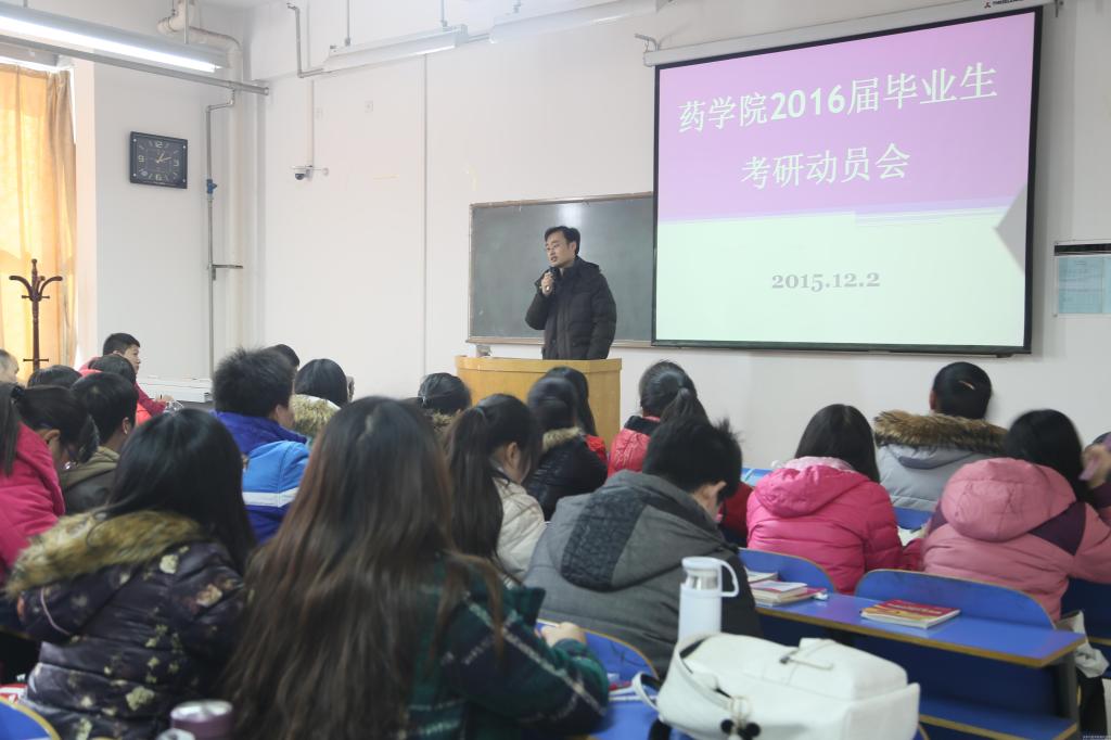 会上,高鹏老师首先强调了考研纪律,要像重视高考和大学英语四六级考试一样重视考研。考研是全国范围的考试,随着今年11月1日起施行的刑法修正案的出台,国家对于考试纪律的要求也将越来越严格。为严肃考风考纪,展药苑学子风采,严禁我院学生替考、作弊,禁止携带通讯工具等进入考场。