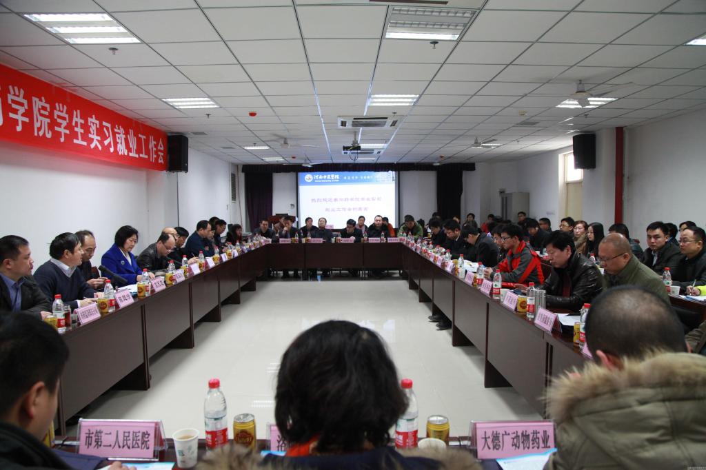 2015年1月17日上午,七猫小说 药学类实习就业工作会在郑东新区龙子湖校区教学实验综合楼B3区BM739会议室隆重召开。来自省内外40余家实习、就业基地的负责人、带教老师等80余人参加了会议。大家齐聚一堂就新形势下如何进一步完善各专业人才培养方案,如何开展药学类学生实习就业工作,如何加强实践教学等问题进行了深入的研讨。院长郑玉玲出席了工作会。教务处副处长高天旭,招生就业处处长李东阳、*七猫小说 全体班子成员、各学科主任参加了会议。*七猫小说 党委书记陈随清主持会议。