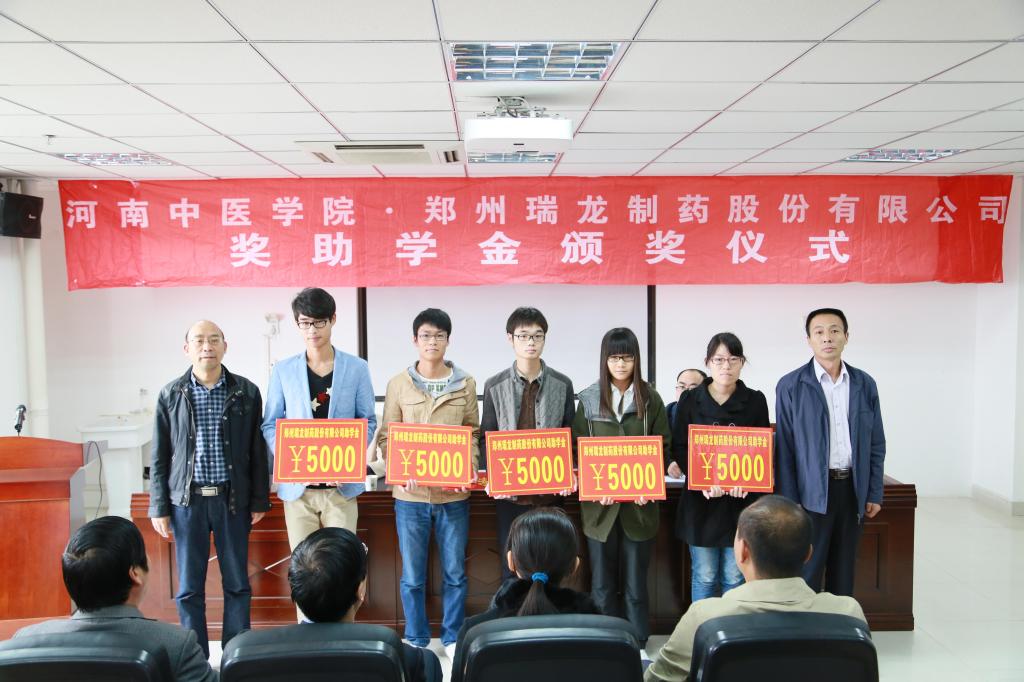 2014年11月1日上午9点,河南中医学院中药传承实验班第二届瑞龙奖助学金颁奖仪教学楼BN617会议室隆重举行。郑州瑞龙制药股份有限公司王洪涛总经理、董事会辛大刚主任、人力资源部部长高武林、*七猫小说 党委书记陈随清、院长冯卫生、党委副书记杨文胜、副院长卢萍、崔瑛、董诚明出席颁奖仪式。七猫小说 2011、2012级中药传承实验班辅导员、班主任及全体学生参加了此次会议。