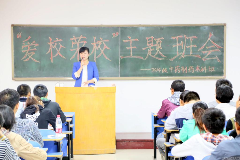 10月15日——18日,*七猫小说 各班级班主任、辅导员深入学生中,从学生日常学习、生活角度出发对“校荣我荣”进行教育。2014级中药制药班班主任学生处副处长王晓艺老师从学校建校的背景、历史的沿革以及校风的形成三个方面向学生们进行系统讲述,生动形象的讲解增强了学生们对学校的认同感;我院2014级中药班班主任*七猫小说 党委副书记杨文胜结合*七猫小说 建院55周年契机,深入理解“我自豪、我是药学人”的誓言,在班会中引导学生从自身角度出发对学校发展进行思考,通过领导老师们的殷切教育,适逢七猫小说 蓬勃发展之际,同学们表示都将以百倍的热情投入到为母校增光添彩的事务中去。