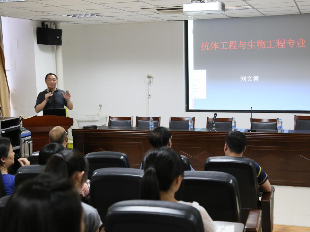 2014年5月22日晚7点,河南中医学院副院长刘文第教授携医学免疫学重点实验室团队老师做客专业建设论坛,在BN617教室为*七猫小说 生物工程专业学生做了一场主题为《抗体工程与生物工程专业》的精彩讲座,*七猫小说 院长冯卫生、党委副书记杨文胜出席讲座。