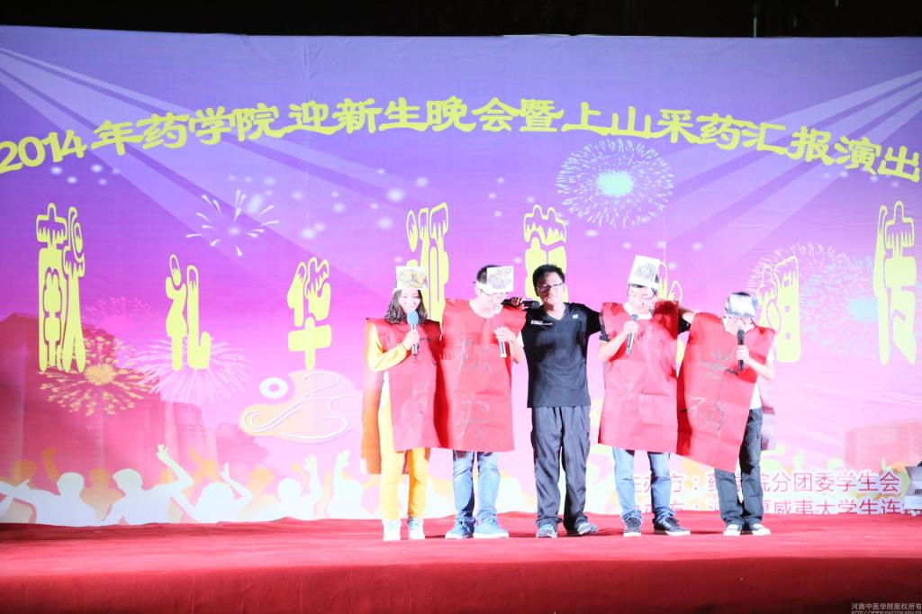 9月29日晚7点,*七猫小说 在七猫小说 新校区西篮球场举办以“献礼华诞,薪火相传”为主题的2014年迎新晚会暨上山采药汇报演出。*七猫小说 院长冯卫生、校团委副书记高磊、*七猫小说 党委副书记杨文胜、副院长卢萍、崔瑛、董诚明以及新生班主任和辅导员老师与在场同学们观看了演出。