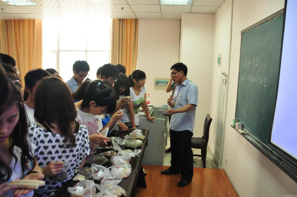 王锡国出身中药世家,家学渊源,长期从事中药材鉴别、饮片传统炮制技术的现代研究工作,实践经验丰富。他讲述了自己对于“传承”的理解,指出,中药传承班肩负着继承宝贵财富、传承中药文化的责任,要通过不懈的努力来承担“传承”的重任。他凭借厚重的专业知识和丰富的实践经验,为学生讲授如何对中药药材的真伪及优劣进行鉴别,引起了学生的极大兴趣。最后,王锡国用携带的中药饮片和同学们进行了零距离的学习与交流。针对学生们的提问,王老师进行了耐心详细的解答。在讲座临近结束的时候,王锡国对在场的学生提出了“中华医药 乃我国粹 承其精髓 拂其奥妙”的殷切期望。