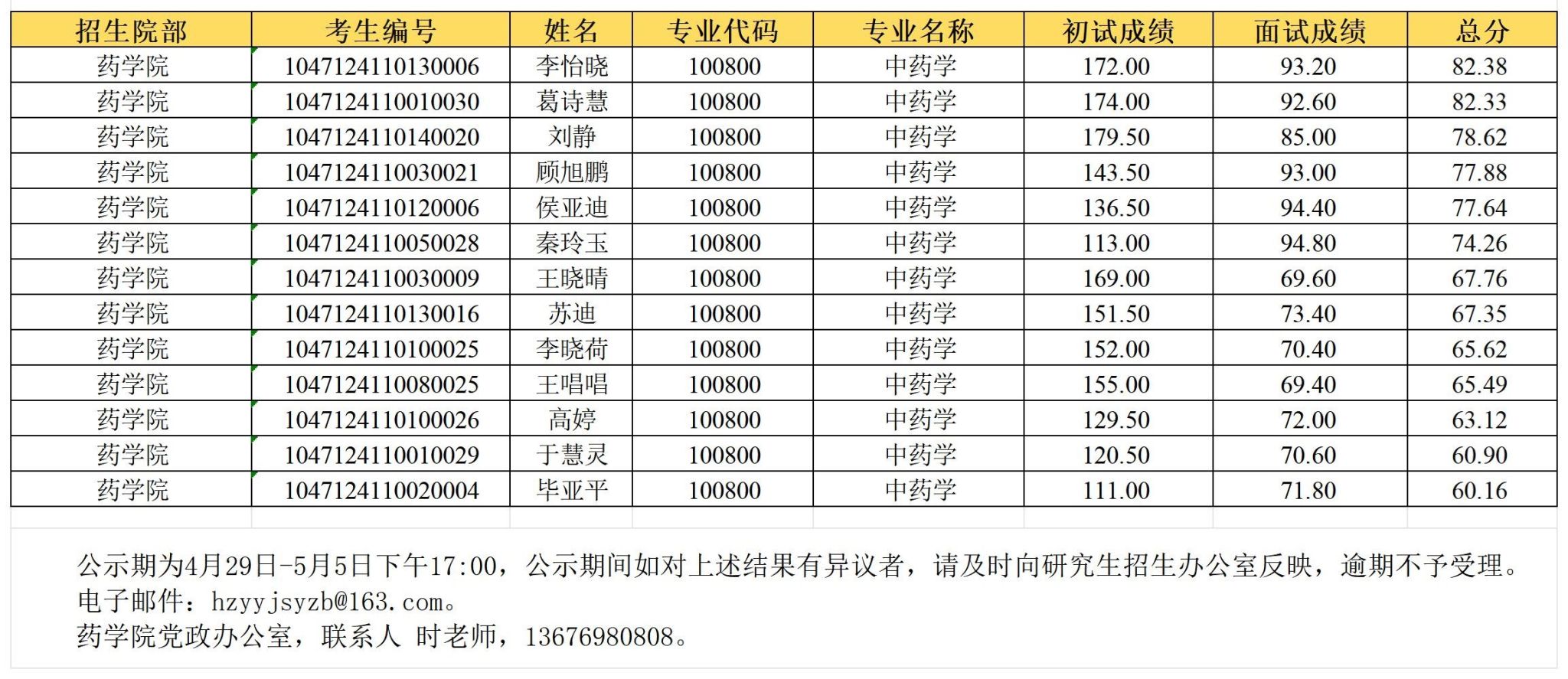 七猫小说 2024年中药学博士研究生招生复试成绩公示