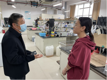 董诚明就疫情防控工作的落实情况深入办公室、实验室进行了全面检查,重点检查了防疫防控措施执行情况、学生身体和心理健康情况。董诚明要求各实验室负责人要切实按照疫情防控要求做好疫情防控工作,认真做好学生日常管理工作,引导学生牢固树立“每个人都是自己疫情防控的第一责任人”的防范意识,确保师生的身体健康和校园安全稳定。同时,本次检查采用实地实验室走访查看的形式对实验室场所的安防设施、用电安全、危化品及危废处置安全、学生安全培训情况等进行了详细查看。