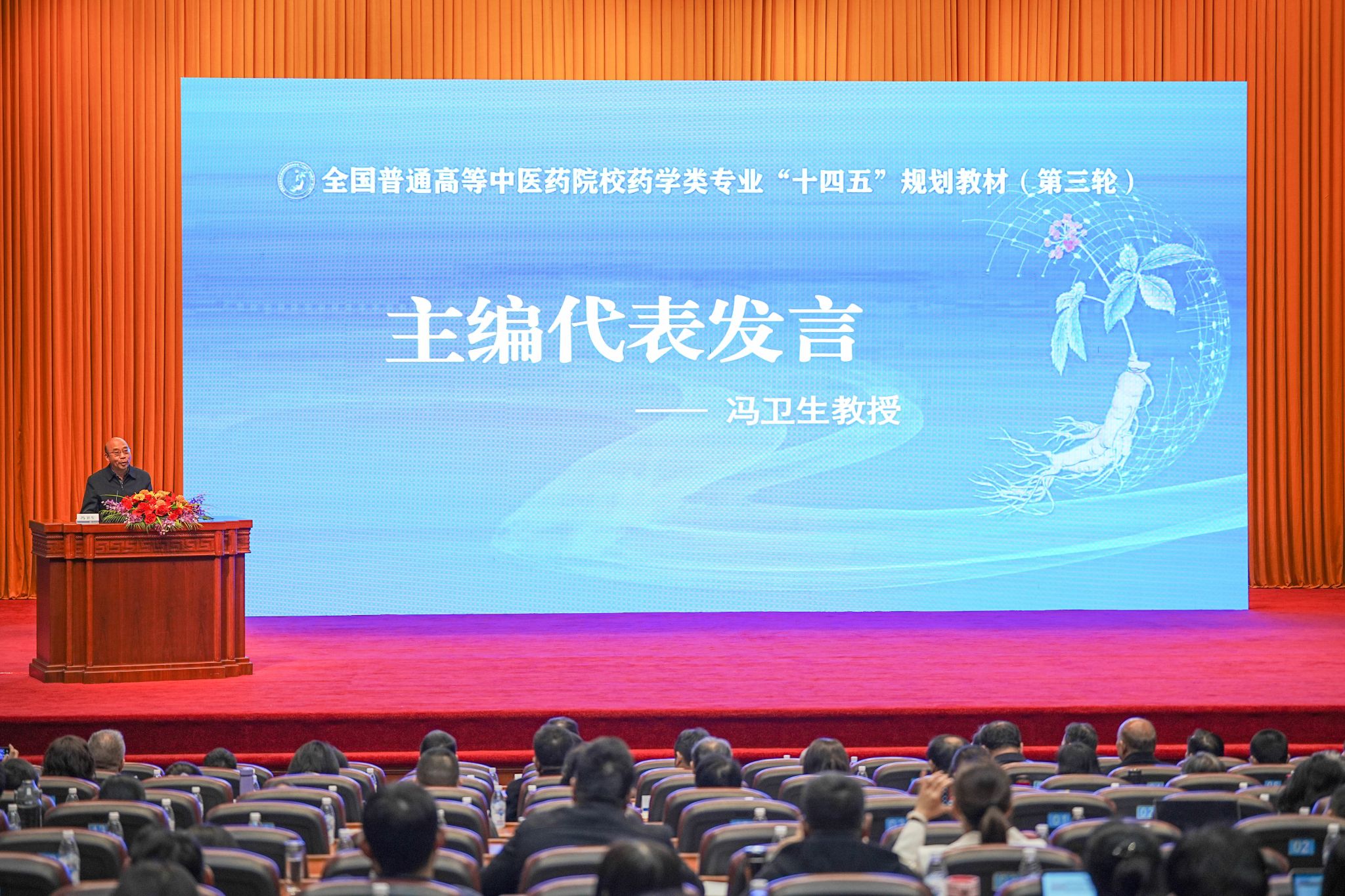 本轮全国普通高等中医药院校药学类专业“十四五”规划教材编写共计47部,*七猫小说 主编教材7部,副主编14部。冯卫生教授受聘为教材建设委员会副主任委员,并受邀作为主编代表发言。