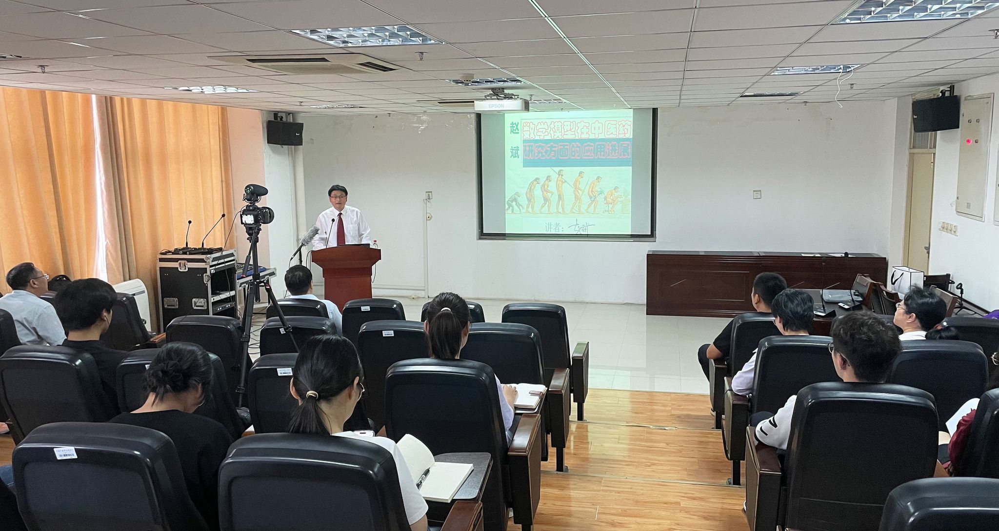赵斌教授以《数学模型在中药研究方面的应用进展》为题,首先介绍了中药数学模型的定义及应用领域,随后就模糊数学模型在中医辨证论治中的应用进行了详细讲解,同时阐述了数学模型建模的完整模式以及教学过程中可以采用的具体教学方法,最后展示了大量中医药领域的研究成果。本场讲座既有深度也有广度,为数学与中药的交叉融合提供了思路及方法。